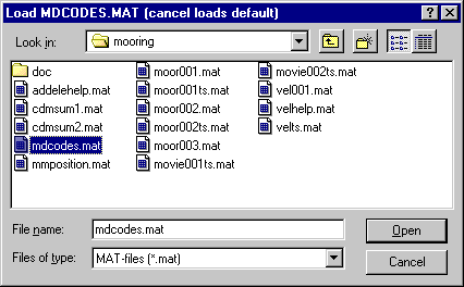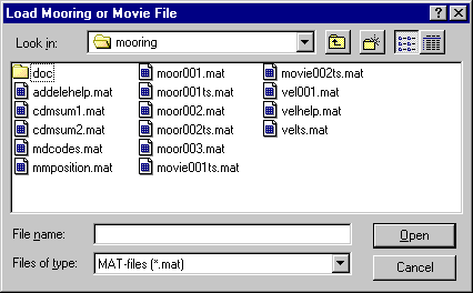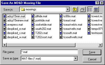 modify, or analyze the mooring. Click on an existing filename to overwrite, or enter the filename.
