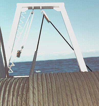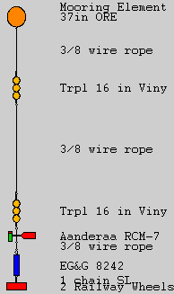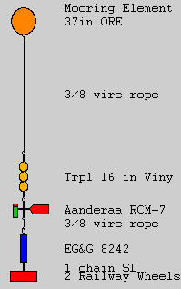 3/8 inch wire rope, a triple set of 16 inch Viny floats, an Aanderaa RCM-7 current meter (at a height