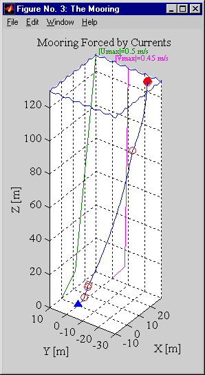 data loaded from MOOR003.MAT, and increases the surface current speed, then the mooring (MOOR003.MAT)