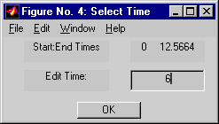 "Select Time" window shows the start and end times of the time dependent currents (user specified