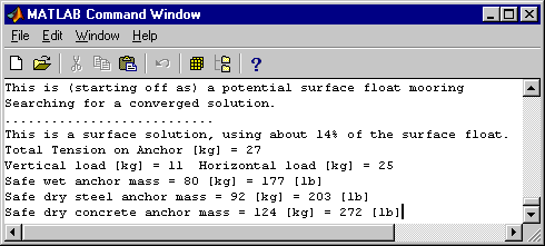 symbols on the mooring wire. Shown below is the information displayed in the command window